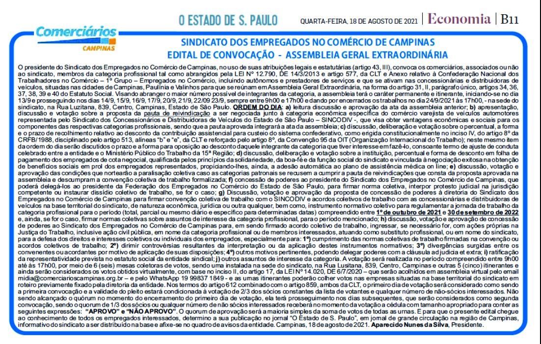 Edital - Campanha Salarial Concessionárias 2021